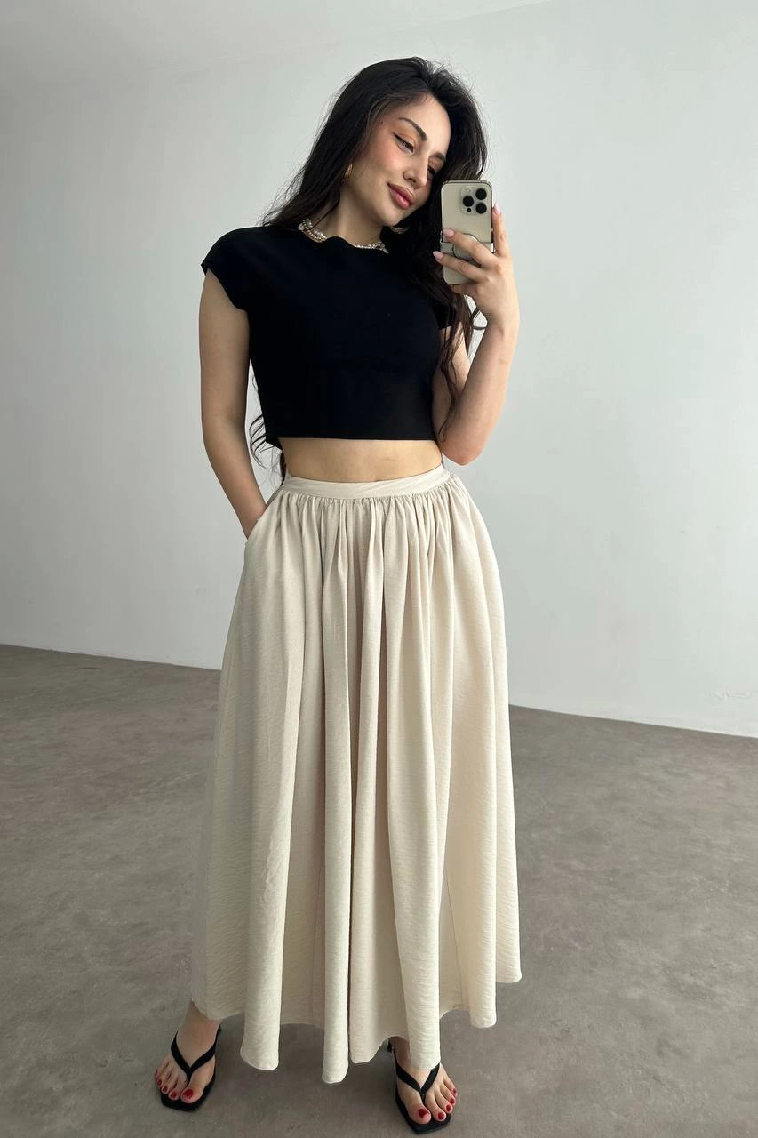 Günlük kullanıma uygun CEPLİ KETEN ETEK KZ24, şıklığı ve konforu bir arada arayan kadınların favorisi olmaya aday!