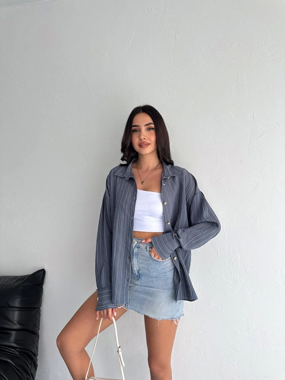KAZAX çizgili oversize gömlek ile hem şık hem de rahat bir görünüm elde edebilirsiniz.