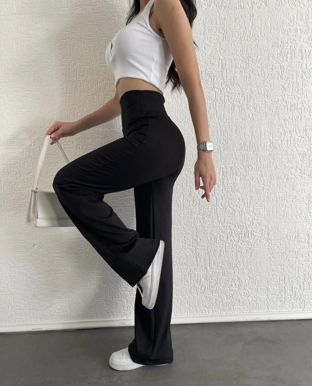 KAZAX Fitilli Palazzo Pantolon Siyah, şıklığı ve rahatlığı bir arada sunar.