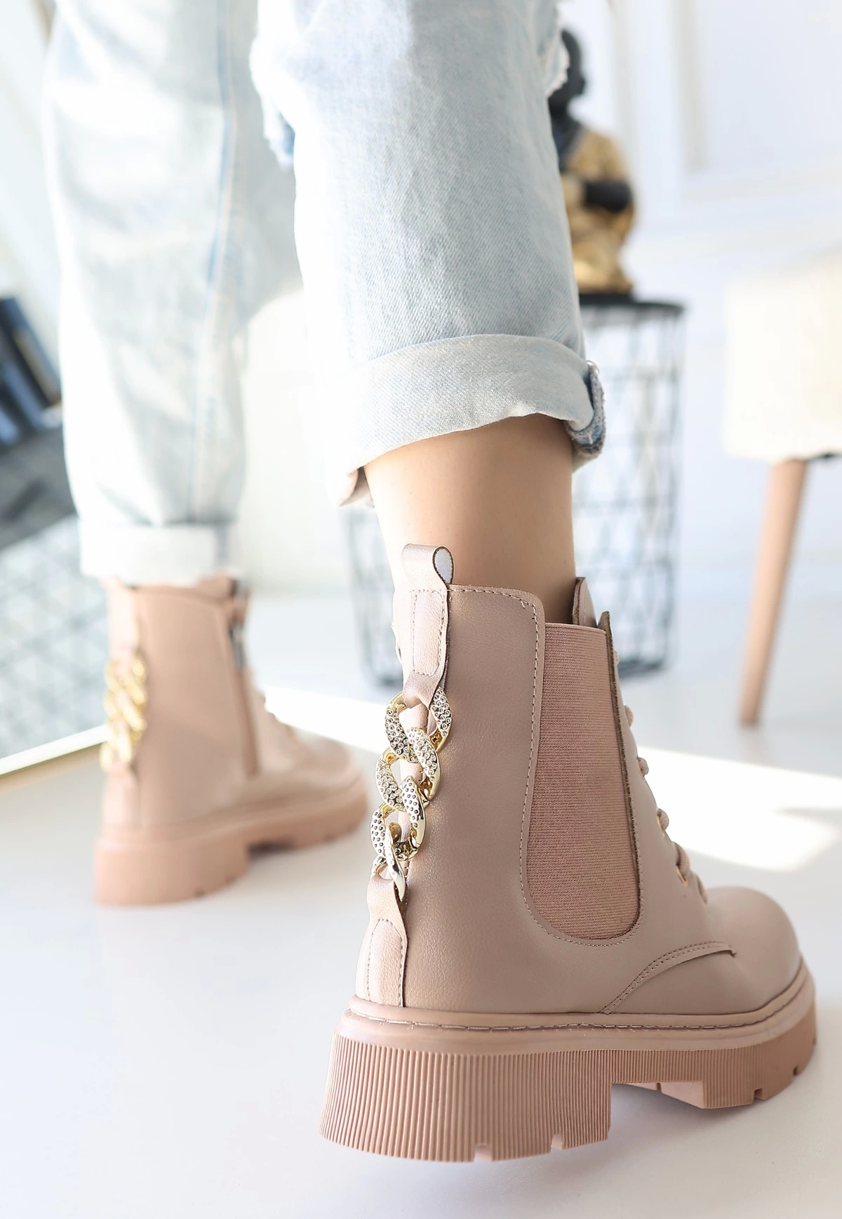 Detay : Topuklu Yandan Fermuarlı Bağcıklı Bot