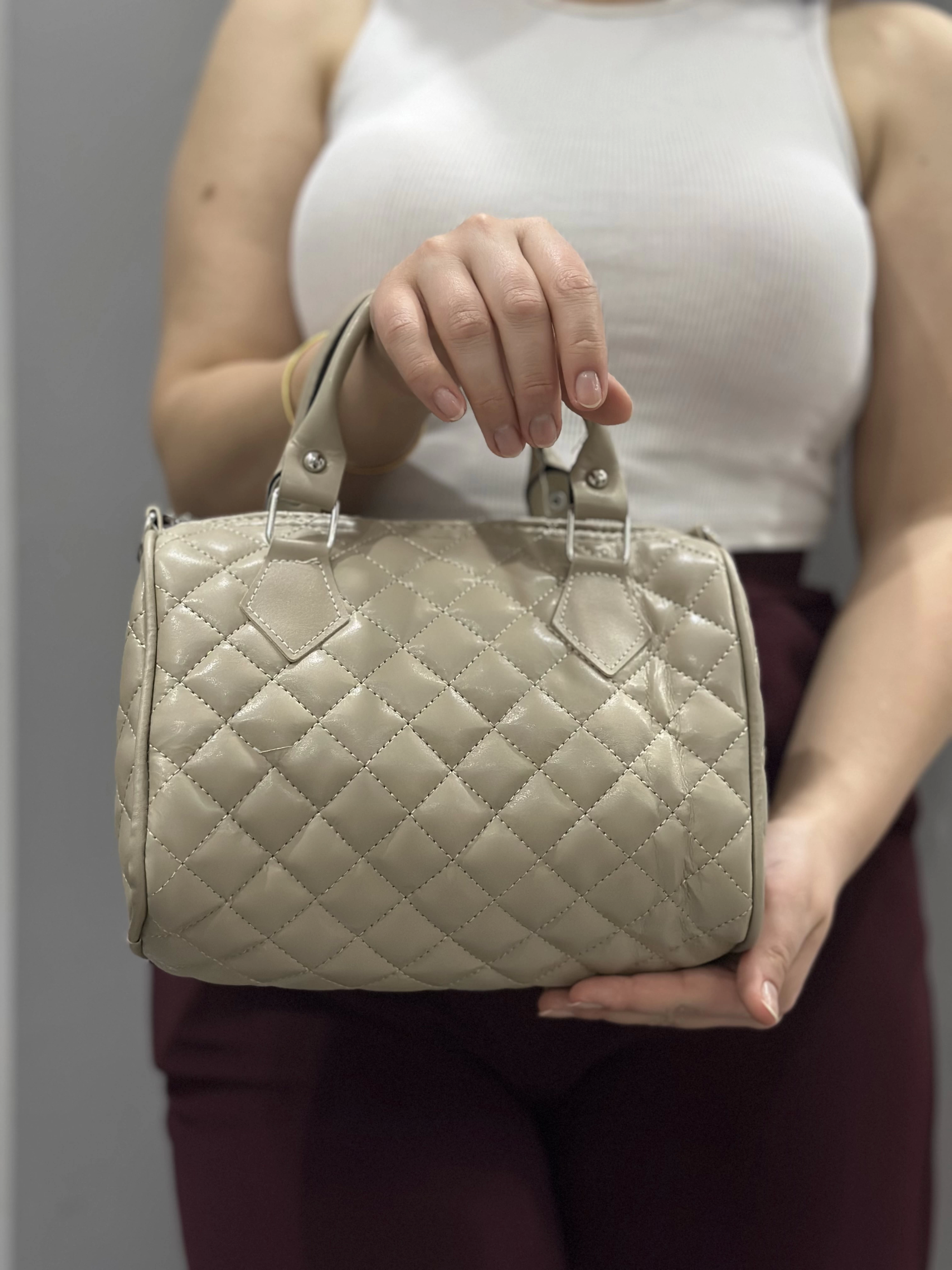 Günlük kullanıma uygun olan Kapaksız Kapitone Bej Cilt Çanta, şık detayları ve fonksiyonel tasarımı ile vazgeçilmez bir aksesuar olacaktır.
