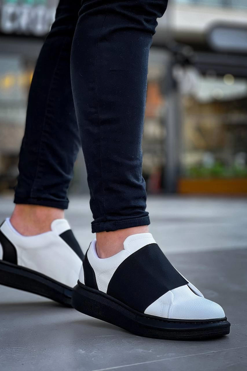 KB-040 Kuback Beyaz Cilt Siyah Yüksek Taban Lastikli Günlük Erkek Ayakkabı