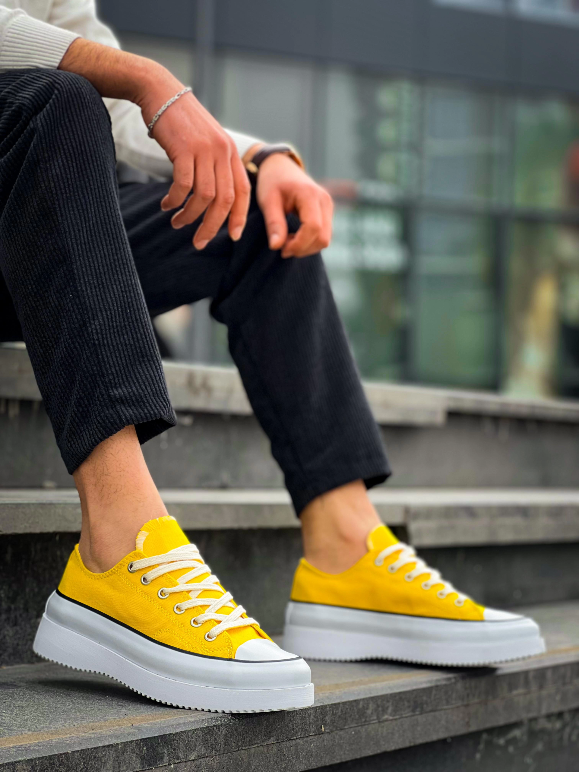 KB-CX-3 Kuback Kısa Sarı Keten Beyaz Yüksek Taban Spor Ayakkabı