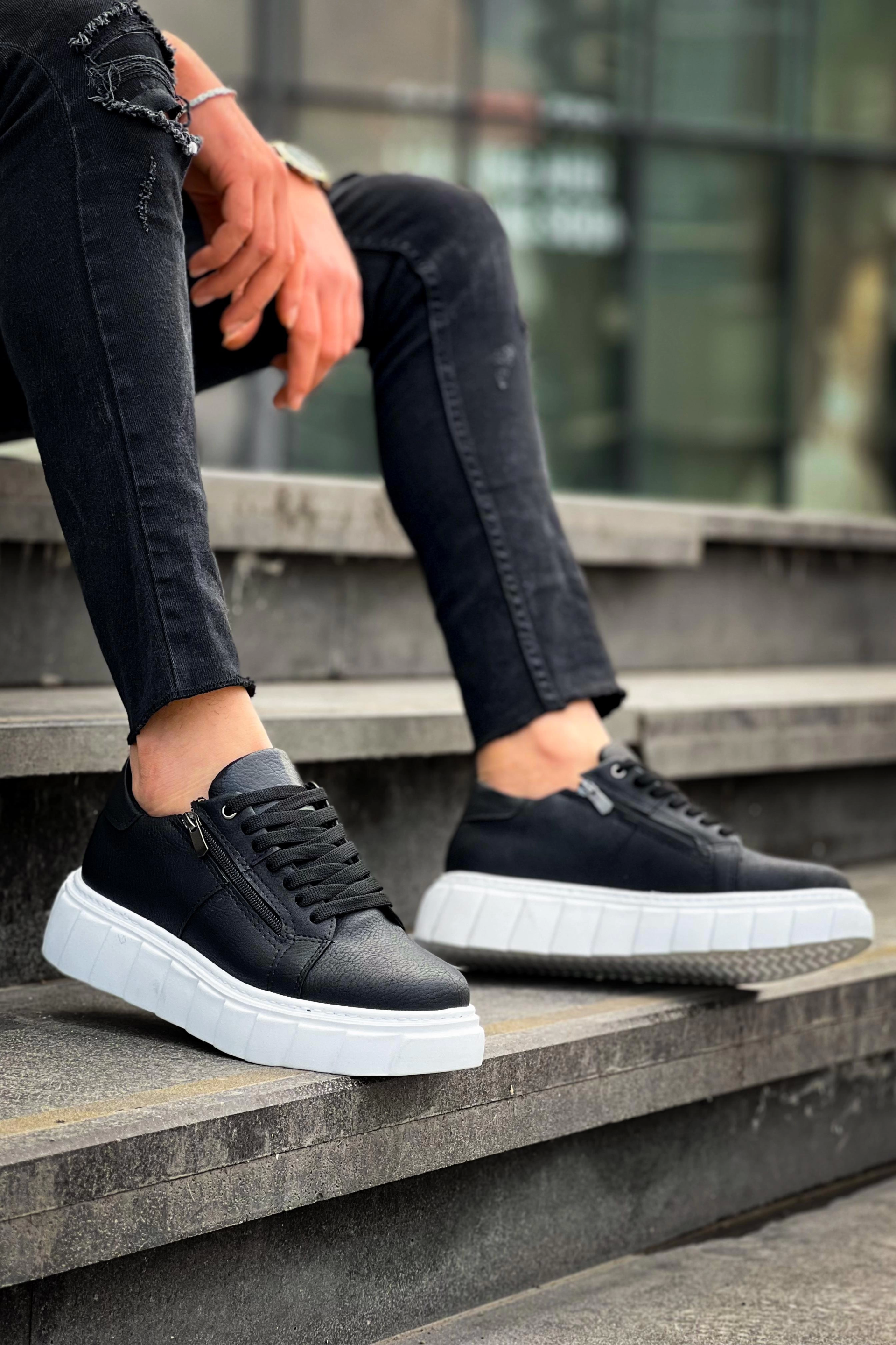 KB-X155 Kuback Siyah Cilt Detaylı Beyaz Yüksek Taban Günlük Spor Ayakkabı