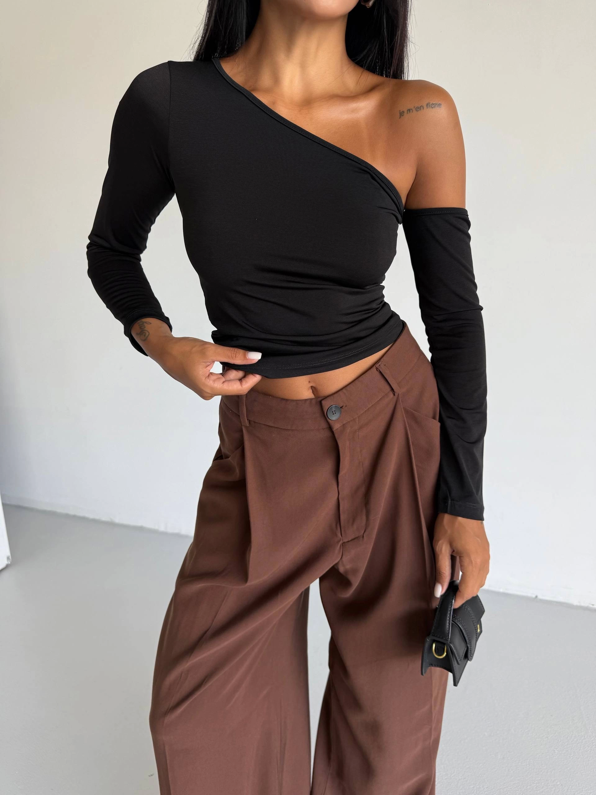 Omuz detaylı kollu bluz siyah f2336, şıklık ve rahatlığı bir arada sunar.